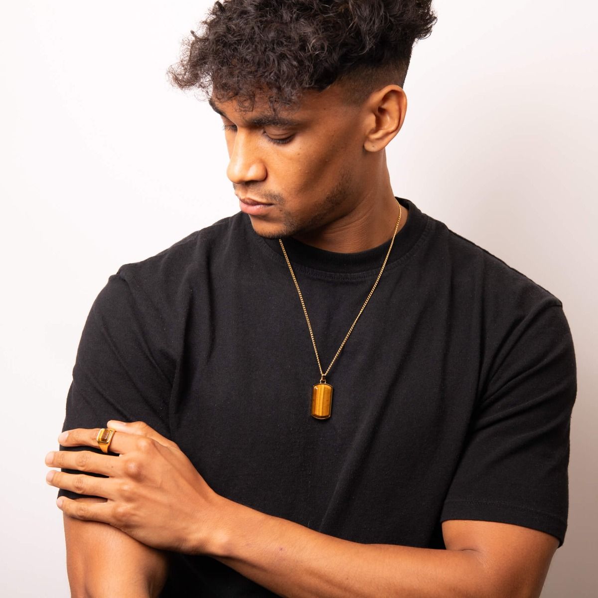 Statement and eye catching, this signet ring is an essential addition to any jewellery collection. Crafted in stainless steel and featuring semi precious stone, this ring is sure to complete any outfit. Why not wear with the matching dog tag necklace for a co-ordinated style!